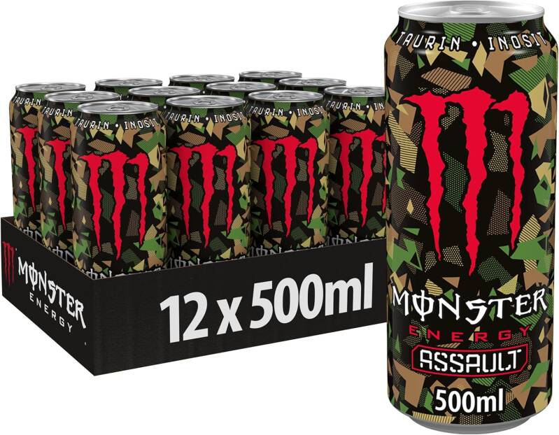 Monster Energy Assault – verfrissende energiedrank met 160 mg cafeïne – in praktische wegwerpblikjes (12 x 500 ml)